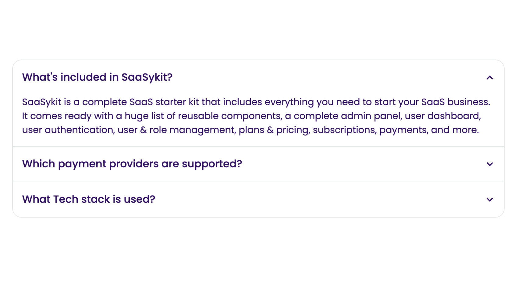 SaaSykit is built on top of Laravel with the intention to save you time and effort by not having to build everything needed for a modern SaaS from scratch, like payment provider integration, subscription management, user authentication, user & role management, having a beautiful admin panel, a user dashboard to manage their subscriptions/payments, and more.